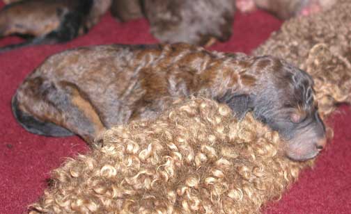 Our tails are docked and due claws done now. Tes waits until we're doing well with some ounces gained...usually 2-3 days old they get done. Our bones start to get harder each hour and day that goes by...when done early there is VERY little pain initially...each day that goes by, Tes can tell with the different litters at different days as we cry more at 3 days then those at 2 days...1 day is done if of good weight and it's just the way it has to be to get into a placement at the vet's.