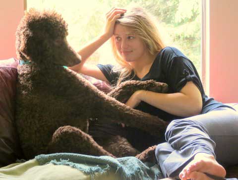 Royal Standard Poodle Brown Charly at home in Gig Harbor, WA. Parents Brown Jasper x Red Daniel born 09/26/14. This is their 2nd standard poodle from Tes.