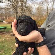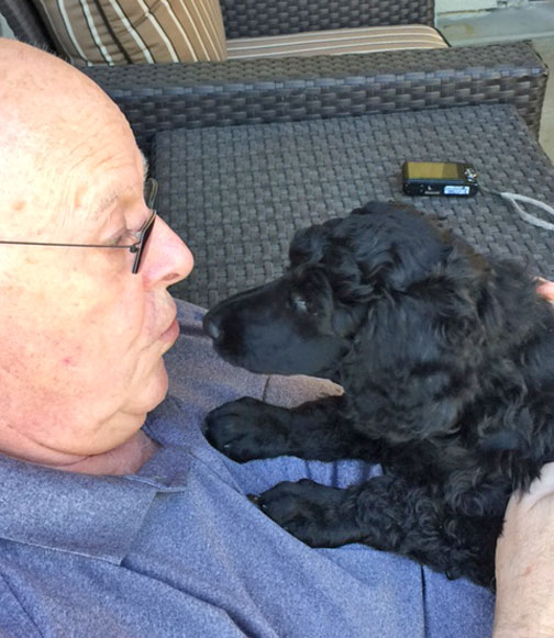 Royal Standard Poodle Black Sherlock at home in Vancouver, BC. Parents Black Zeddy x Brown Bruno born 09/22/15