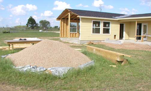 ...the pea rock will be placed for the puppies as I lay the bricks to section that area off of the porch...there are the beams for the porch...I have been using Restore for MUCH savings...this is Habitat for Humanities store where people donate goods to raise funds...well it has saved me thousands of dollars in going there every Tuesday in Austin where I receive a senior citizen discount on that day.
