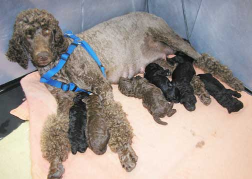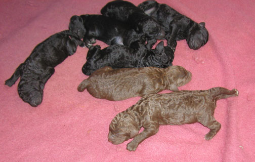 Royal Standard Poodle Puppies with Brown Jasper Spring/Summer 2015 litter has arrived! 7 wks old; 2 Black Males, 4 Females (2 Brown & 2 Blacks) = 6 pups M/F $1,650 - 6 puppies doing very well :o)))