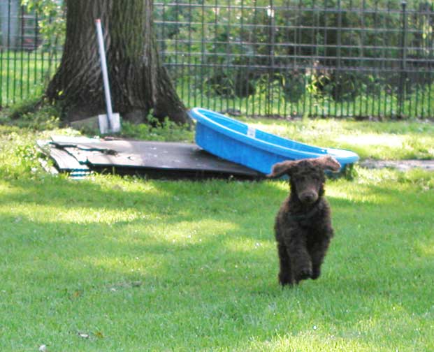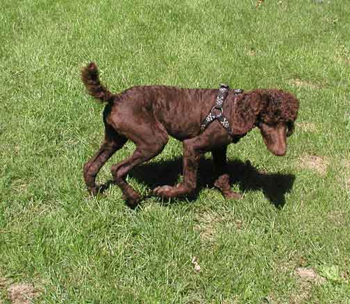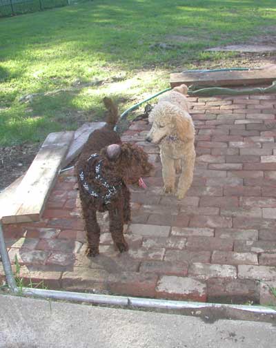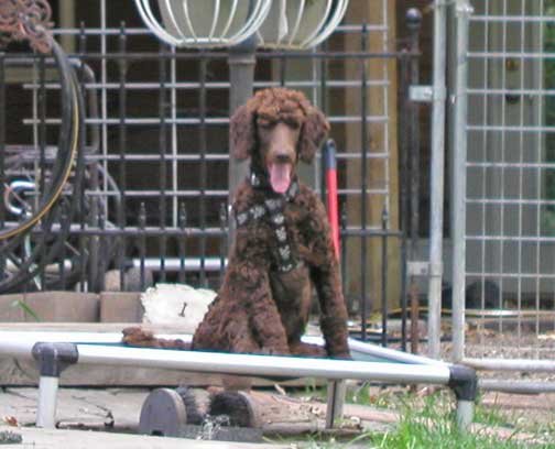 Learning steps is a part of our training at Tes's home...she just got done putting in a doggy door in the screen door, so now we have a new learning challenge, which only took less then 15 minutes! Tes calls us "Potty Outside" and we all come a runnin'! And, of course, potty outside :o)) I'm growing and becoming a tall lean boy already...looking to become that Royal Standard Poodle from Zeddy x Bruno.