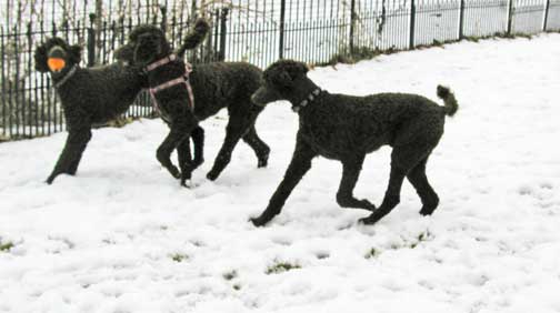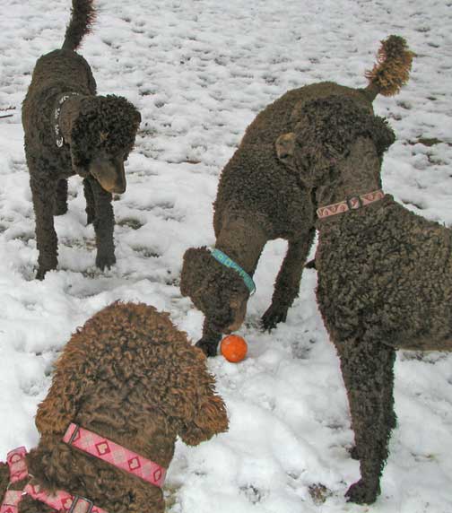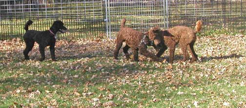 Woo Hoo! Getting in some great play time before the MN winter arrives; come on Magic (brown), Niki (apricot), Kherty (black)!