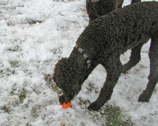 This is a Kong ball I'm chewing on...GOOD and durable! Good for my teeth and gums. Wait, don't move, I'll be back :o)