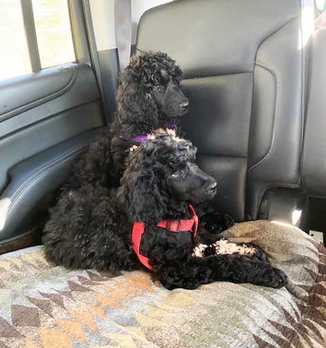 We're heading for another vet visit...woo hoo...keeping us healthy and happy, all a part of growing Black Royal Standard Poodles Molly Sadie sisters.