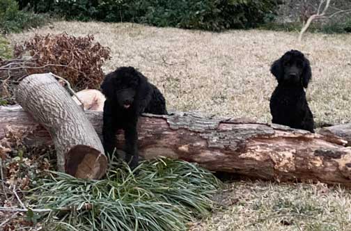 Is this a mirror or is it two Black Royal Standard Poodles Molly and sister Sadie growing? ...at home with BC and family in Fort Worth, TX. Molly & Sadie were born from Magic x Dash litter 11/1/2019. Now to tell us apart as we grow ;o)
