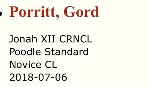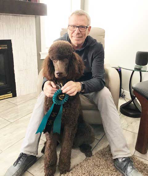 Brown Standard Poodle Jonah is a WINNER in his owners eyes! Born from Jewels x Bruno 11/14/2016 and becoming a go getter in CARO Rally Novice title in 2018. Owners JGP of Regina, SK Canada. Jonah's a tall boy like his dad Bruno :o)