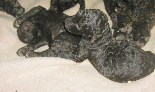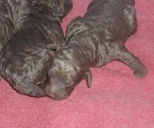 What I have always done, as shared in Jane Killion's way, is crawled in with the pups when their eyes start to open and begin socializing them by holding, cuddling, touching them all over...allowing them to crawl over me, learn of obstacles and allowing them to have light learning frustration. Yes, that helps them to learn on a gradient gaining in intelligence as the smart poodles that standards are known for...ah so much to help them begin their lives with the best opportunities :o)