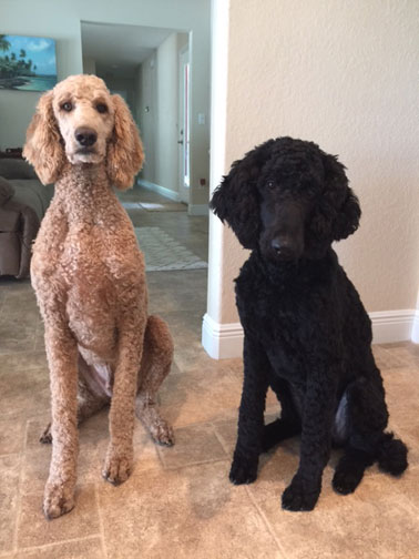 Last Updated 11/26/20 Large Apricot Standard Poodles Nico Black Dino and White Kara are very handsome boys and happy, loved very much by their family. They share Nico loves: "Swimming, hiking, truck rides, playing at the beach, playing with brother & sister, meeting new friends, chewing up the wall, boat rides & more I don't even know about yet!"