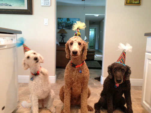 "What smart poodles do on a hot summers day in Florida!" :0)