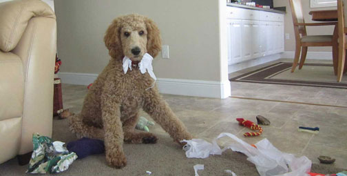 "My parents got a new couch and moved it into the "poodle room", as you can see we've taken it over. They can't even join us for coffee in the morning."