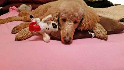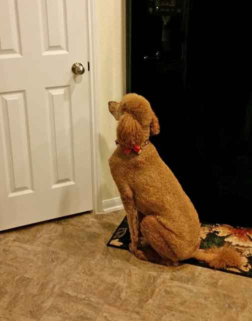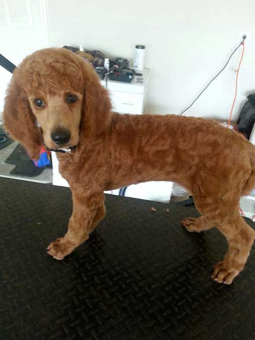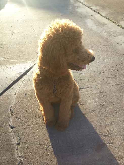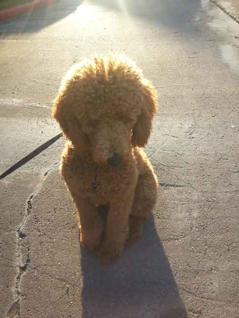 Standard Poodle Red Kolby at home in Houston, TX. Parents Red Fire x Red Daniel born 06/29/14 -"I am already getting so much attention, I love it!"