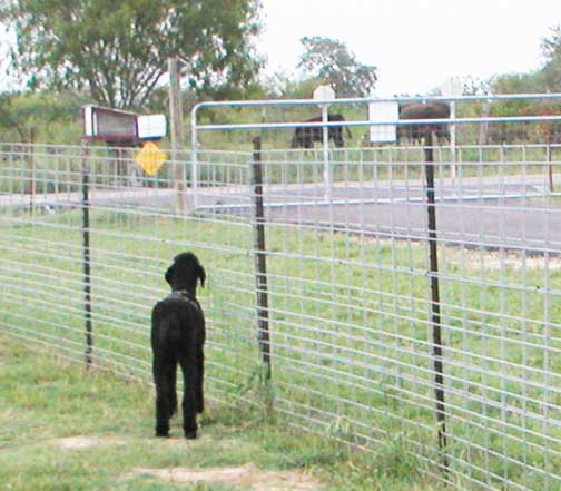 Unique scene in the countryside of TX. No we're NOT cattle grazing! We're spoos digging holes and finding lots of smells to check out :o)