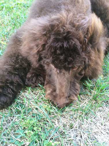 Leo Brown Standard Poodle born to Zeddy x Bruno 4/16. I was the smallest in the litter, yet NOT small in personality! My new kid friends believe I'm a great addition to the family - Woo-Hoo!