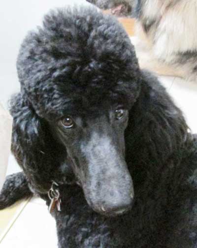 Royal Standard Poodles-Zack, at home in Indianapolis, IN with my new family and bud Sunny. We love taking it easy!