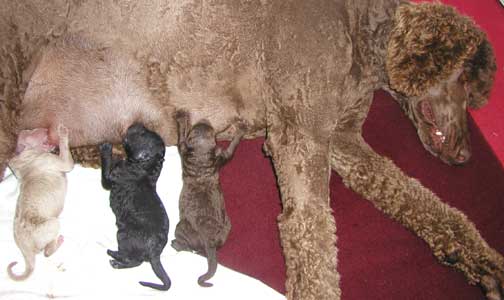 In raising Royal Standard Poodles, I hope to share a bit of what I do to bring you your next pet :o) My bedroom must be heated to 80 degrees as pups just come from the womb and they have no way to monitor their bodies being just born, especially the first week Through the Woods of Mother Nature. Wool blankets are used to wick away moisture and keep them dry and warm. I have a variety of colors, to make a more colorful page for you ;o)