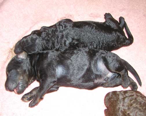 ALWAYS time to snuggle in and zzzzz....what puppies do best...zzzzz...and nummy nummy nurse ;o) Their first sense is smell. They come out ready to smell for the nipple and start nursing. In 11-14 days the next sense is the opening of their eyes, then around 3 wks old their ears open up to start hearing sounds...at which THEY start VOICING sounds to let me know things aren't as they use to be...Quiet...