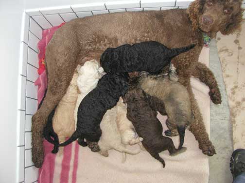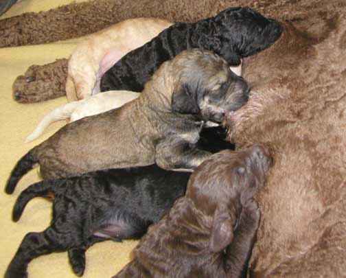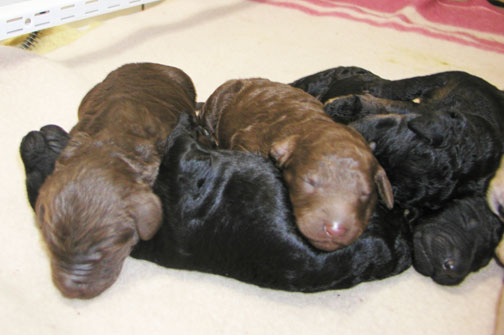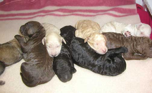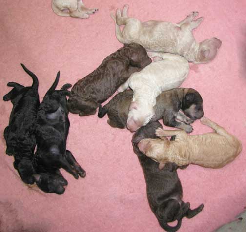 The variety of Red, apricot and cream pups...with our eyes opening :o)