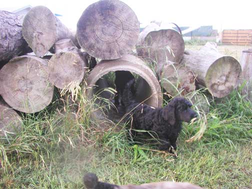 The swamp cooler will be set up soon for the TX heat, to keep us cooled down outside, and of course momma is a great enticer to get us out as well...I engineer a wool flap on the doggy door so puppies more EASILY learn to go in and out...After awhile I pull it off and they learn to push with their weight on the original flaps.