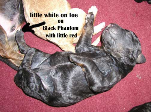 SOLD - "Rainbow" Black/Red Phantom mc 4888 - 7 wks old - 9 lb 8 oz. My red markings has Tes in love with me as this coloring has been everything she desired in having Phantom Vyke as the dad, red Daniel as grandpa. I'm going home to SP > Waco, TX *UO repaired