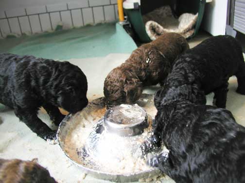 Hi. You can see why we need our bath by 5 wks old :o) That's when we get close to wrap up on slurry, the dry dog food starts to come into our hunger game.