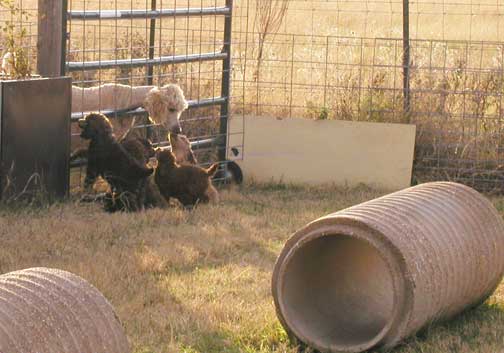 We're growing, climbing and starting to become little scooters...what's back there? More puppies!!!
