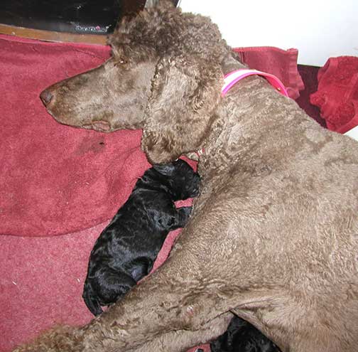 In raising Royal Standard Poodles MxE Puppies For Sale, I hope to share a bit of what I do to bring you your next pet :o) My bedroom must be heated to 80-90 degrees as pups just come from the womb and they have no way to monitor their bodies being just born, especially the first week Through the Woods of Mother Nature.