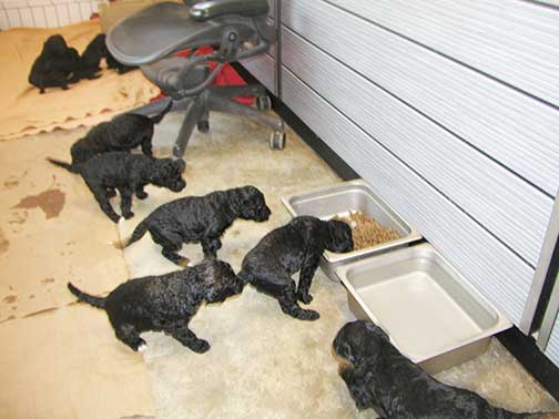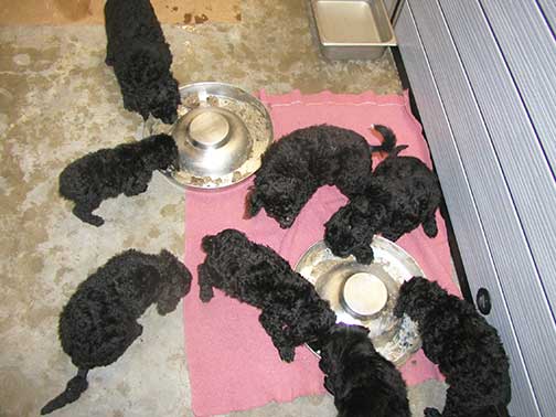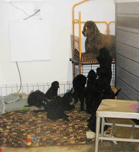 Remember to start at the bottom of the web page and scroll up to watch us Royal Standard Poodles MxE puppies for sale grow up onto the page, as pictures are added upward every two weeks :o) Tes does her best to share what is done as a breeder in growing us up for you. Having 11 is a huge litter so Tes wants to assure all stay healthy as well as keeping momma Magic fit for caring for us.