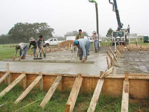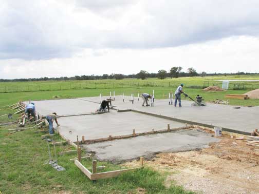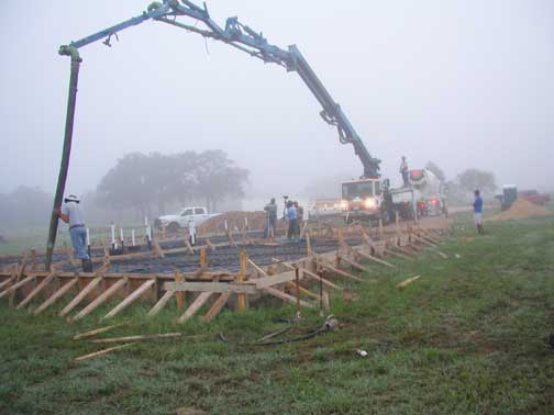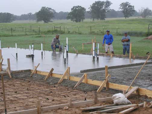 Very little time to take a break when working with cement...there is the in between trucks that breathers can be taken...plumbing pipes show where kitchen and bathroom will be.
