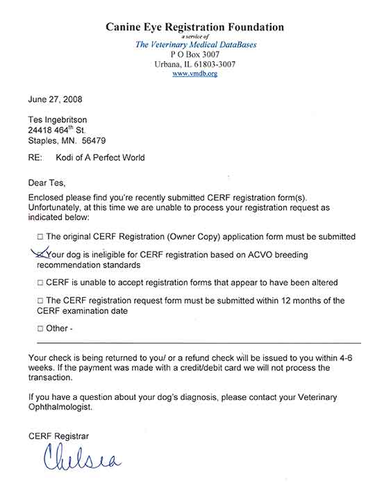 Kodi 5 yrs old - CERF eyes; now named OFA Eye Certification Exam/OFA Companion Animal Eye Registry (CAER)