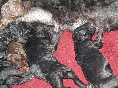 Our tails are docked, we're all figuring out the zzz's and nummy nummies in any position we can while momma rests up:o)))