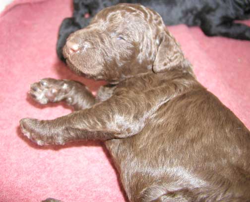 SOLD - "Mystique" Brown Female - 7 wks old 11.4# > microchip (mc) 8910. Mystique will be kept for breeding to mate with our Red Daniel!