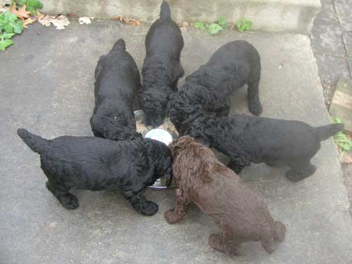 We've started to eat slurry, it's a blend of baby rice cereal, buttermilk to prevent diarrhea, a special canned dog food called mousse to help puppies transition and eventually canned dog food will replace the mousse :o) What I call our circle of life :o))
