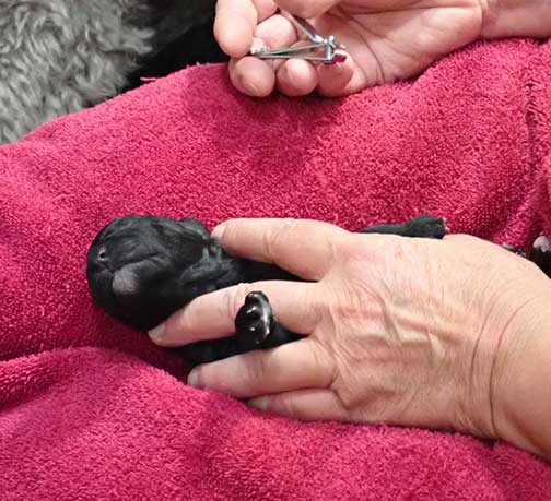 ![]() "Venus now Margaret" - 5 wks old mc 0011; 7lbs; Black. |