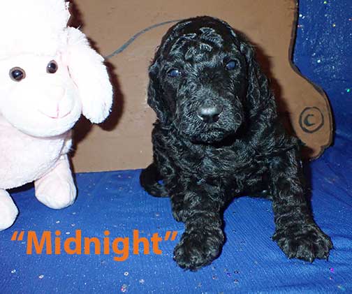 ![]() "Midnight now Sooki" - 5 wks old mc 0885; 6lbs 10oz; Black. |