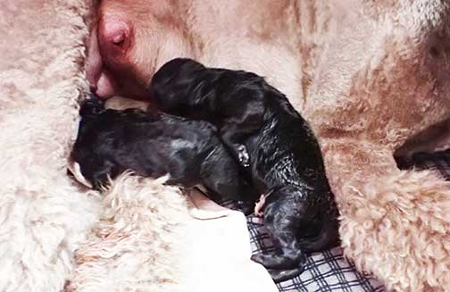 In raising Black Royal Standard Poodles CxH Puppies For Sale, I hope to share a bit of what I do to bring you your next pet :o) My bedroom must be heated 80-90 degrees as pups just come from the womb and they have no way to monitor their bodies being just born, especially the first week Through the Woods of Mother Nature.