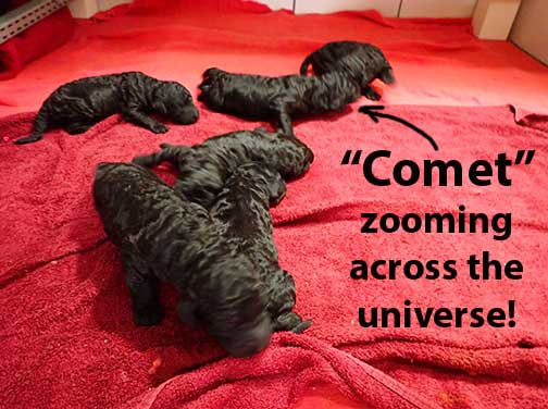 ![]() "Comet" - 5 wks old mc 0188; 8lbs 7oz; Black. |