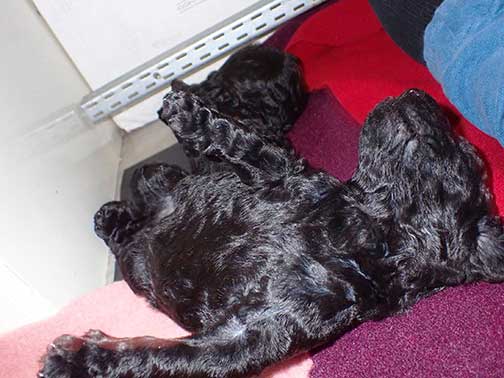![]() "Halley" - 3 wks old mc 0674; 3lbs 9oz; Black. "Halley" -7 wks old mc 0674; 10lbs 5oz; Black. |