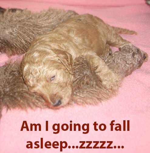 SOLD - Bruno 1 now "Arlo"; mc 0851 Brown 8 wks old, 10 lbs 3 oz. I'll be heading home to live with a spoo bro from Tes before with LH > Minnetonka, MN. Tes shaved me with a goatee to see the difference of us. I'm quite positive the males are Bruno boys as Draco carries no brown.