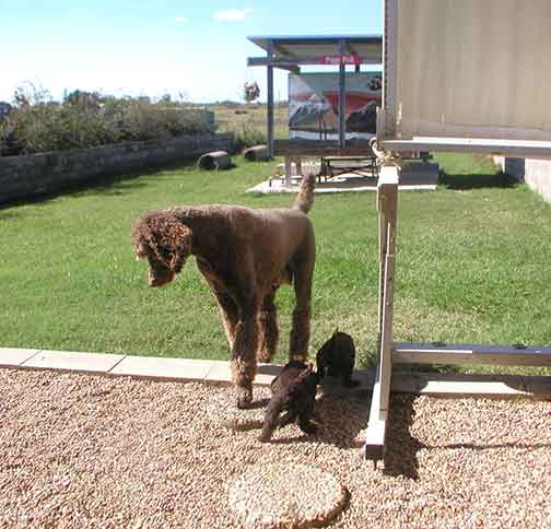We've really got the doggy door figured out now, in and out. Tes has to shut us in at night now as we doooo enjoy going outside!
