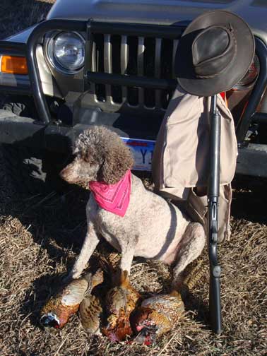 Last updated 1/8/17 Hunting Standard Poodles Fergy can show other dogs how to do it! She's now 3 yrs old, born in 2009. Fergy lives in Redfield, ND with LT where the birds can REALLY be found...and they know how to train us well!!!