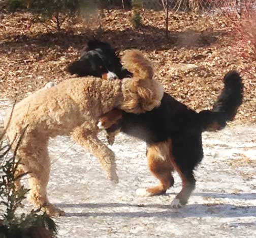 Zada running like the wind with her pal Piper. Good way to stay warm in the Minnesota snowy winters!
