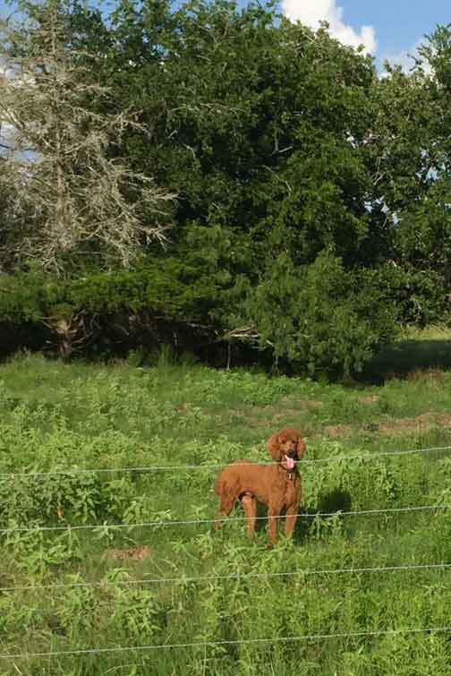 Last updated 5/22/21 Large Standard Poodle Red Ranger at home in Flatonia, TX. Parents Red Fire (now TJ) x Red Daniel born 06/29/14. Pictures above: Mother "TJ/Fire" (right) and Son Ranger (left) Outing & Life in Texas! :0) Now Black Rascal and Red Sky have joined the pack!