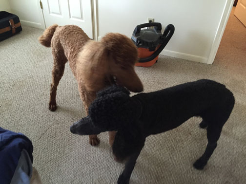 2 black spoos [Bogie and Rascal (TI)] + 2 red spoos [Ranger and TJ (both TI)] + 1 parti (Louise) = 5 Spoos! Tes feels right at home until her spoos can come down :o))