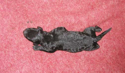 The milk is flowing beautifully to grow these pups FAST! Look at the tummy in the black pup below, already working those legs to pull to momma.