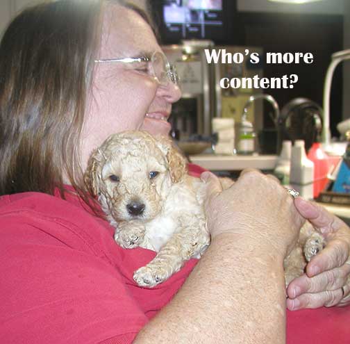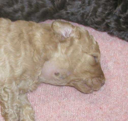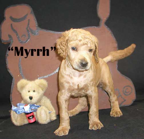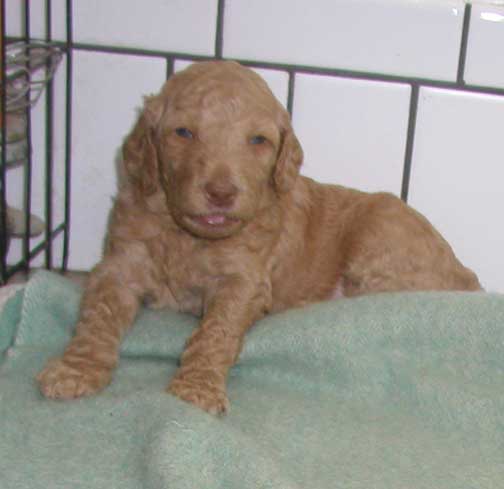 ![]() "Sage" Apricot Standard Female mc 0355; 5 wks 4.2 lbs. - 7 wks 7.4 lbs. |