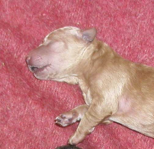 ![]() "Sage" Apricot Standard Female mc 0355; 3 wks 1.14 lbs. |