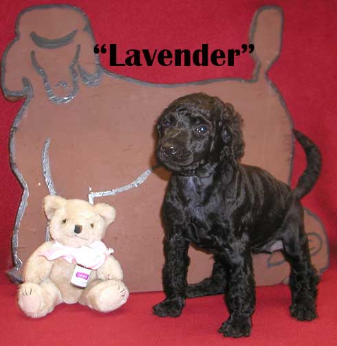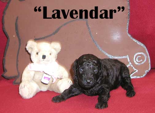 ![]() "Lucille Grace" (Lavender) Black Female mc 0431; 5 wks 5.4 lbs. - 7 wks 8.14 lbs |