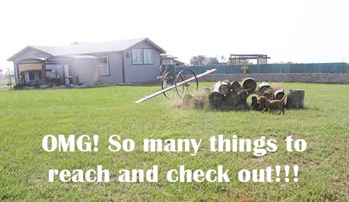 Okay, Tes has the swamp coolers going, a little bit more straightened out for us under the pergolas in the evolution of front Blue Bonnet Park in having two litters at the same time. She gets to bring the pressure washer out and "Flush the Toilet" as she shares in cleaning the park areas...see what we get to reach into in the coming weeks? LOTS of space out there! A little pool for us to become familiar with, a deck momma can jump up on to get away from us if she wants...and lots of toys to play with.