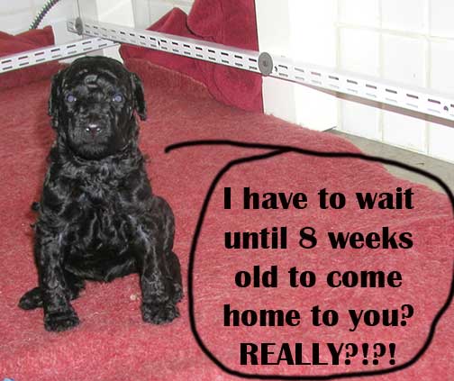 Tes received a call from an older customer who watches the site and she shared; "Remember Tes, my boy was 6 lbs when he came home at 8 wks old, and he's now 72 lbs!" She never knows how big we'll grow.